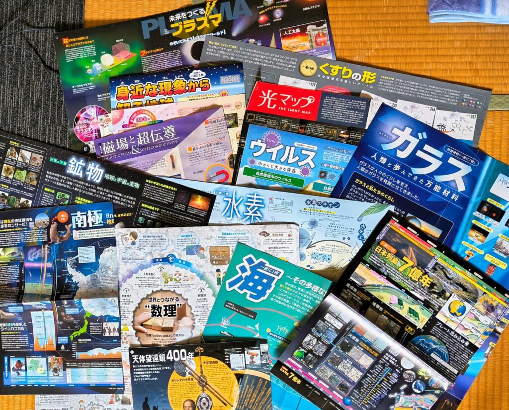 そして科学館や博物館で「一家に1枚」という科学技術ポスターが無料で配布されているんです。毎年テーマがあって、そのテーマの科学技術についてみっちり書かれているポスターで、私も毎年楽しみにしています。https://www.mext.go.jp/stw/index.html