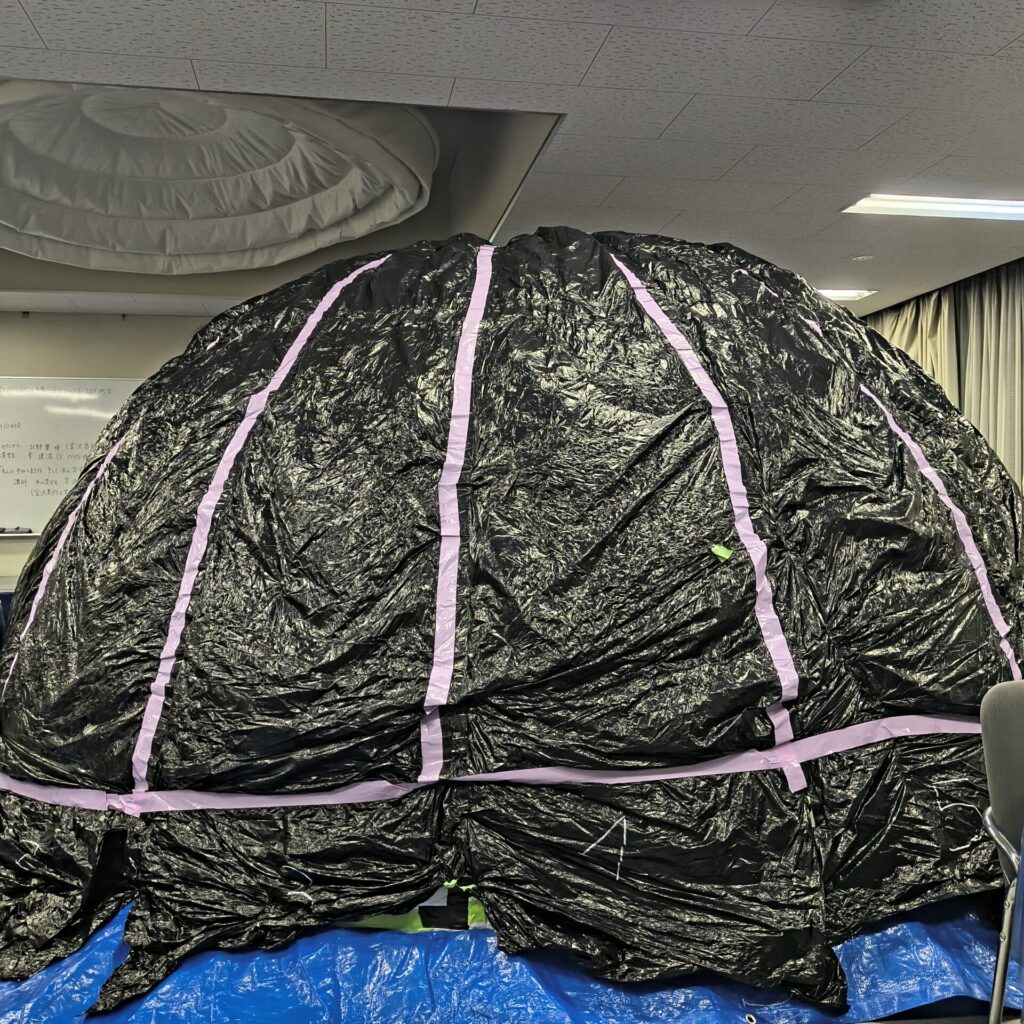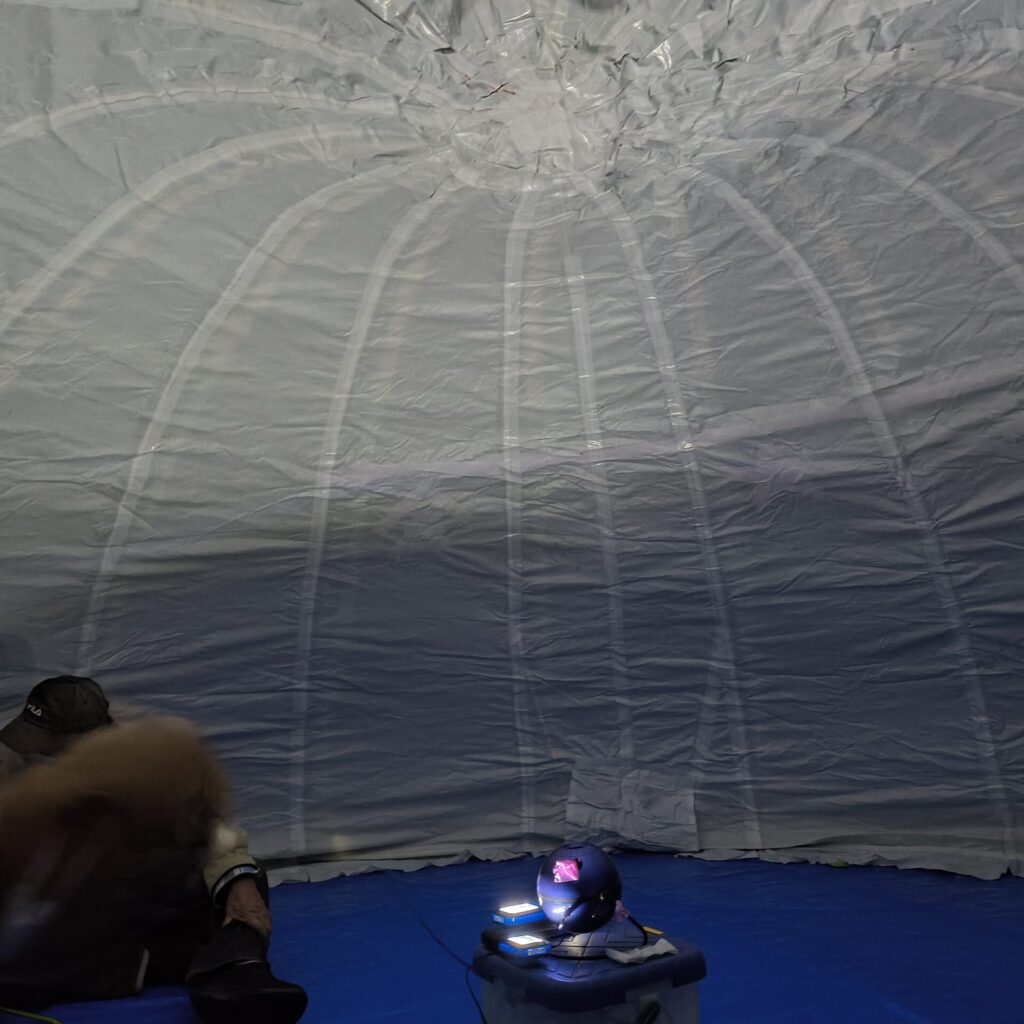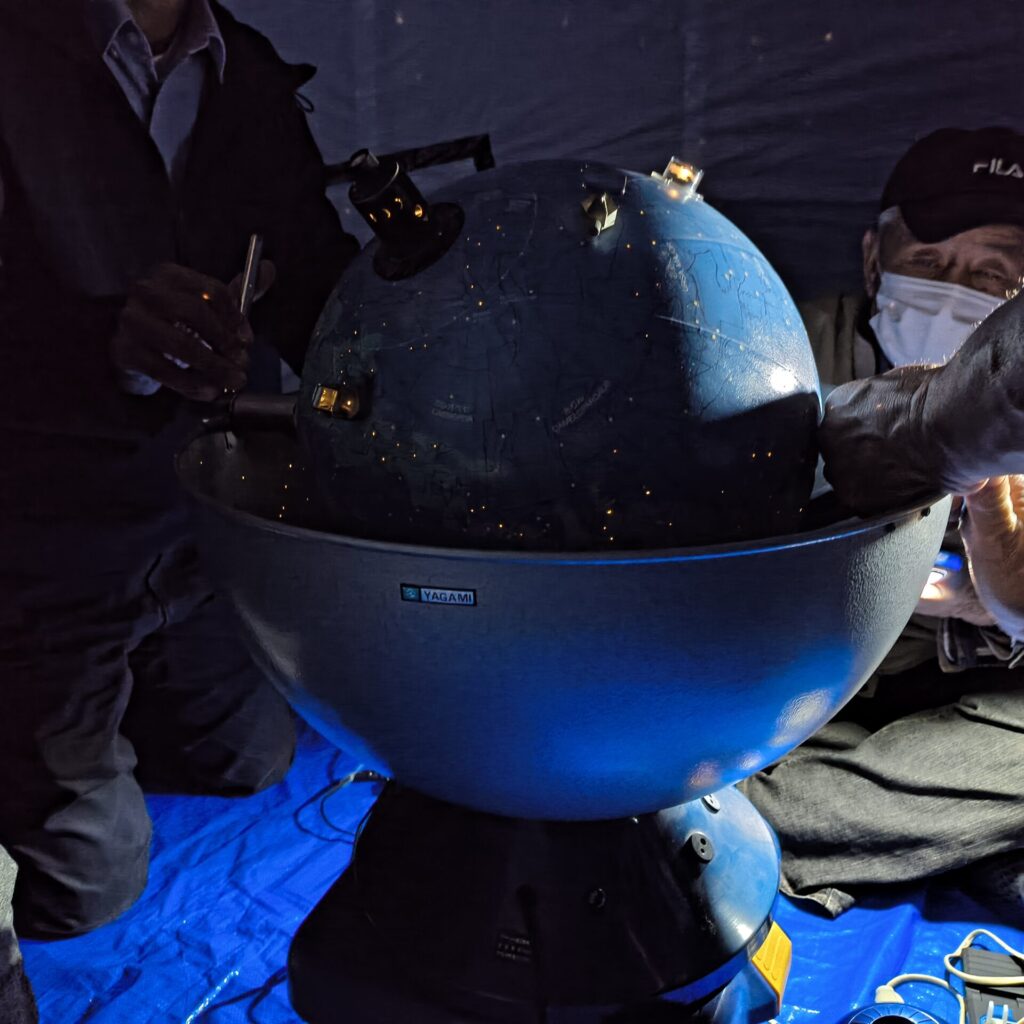 写真を見てわかるように、プラネタリウムドームは星の会副会長が手作りしたビニール製!これがまた手作り感があり、とてもいい雰囲気なんです😊