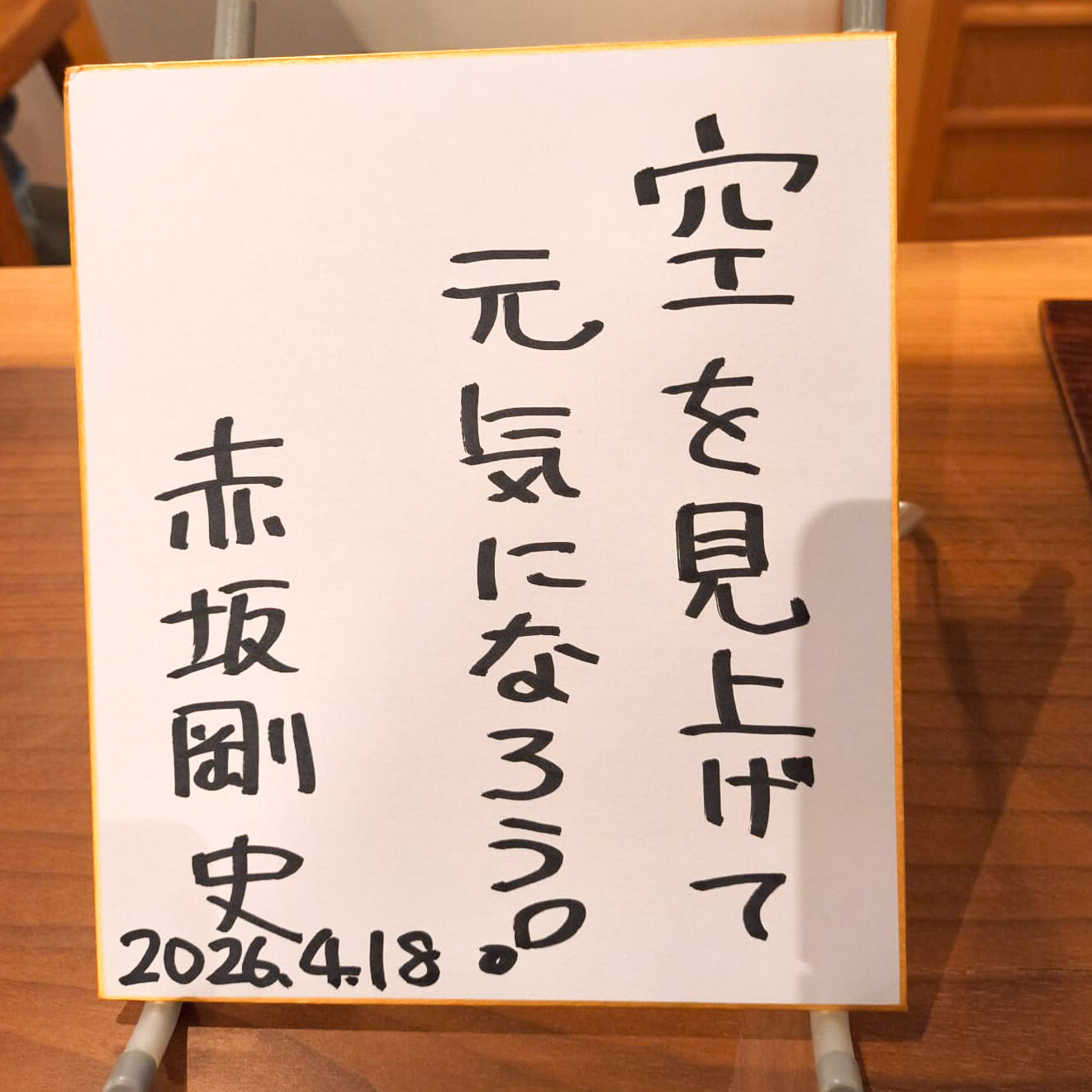 先生に書いてもらった色紙には「空を見上げて元気になろう!」と書いてありました。日々いろいろありますが、この力強い言葉を思い出すと元気が湧いてきます。