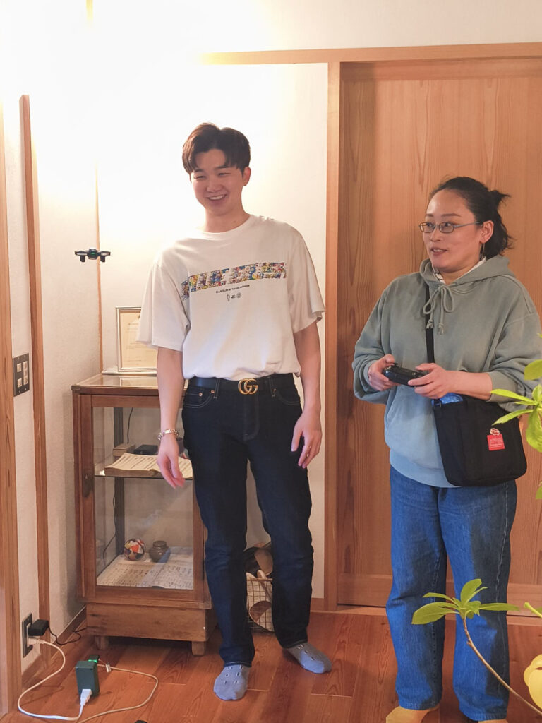 いつもより受付時間を早めて、イベント開始前にミニドローンの操縦体験を行いました。ラジコンの小さなドローンですが「3次元空間で機械を動かす」ことの難しさが体験として伝わってきます。