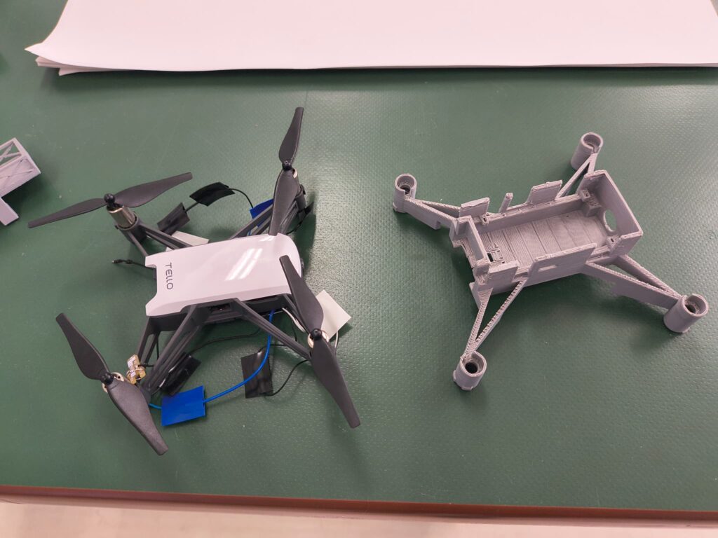 3年生でCADを操り、3Dプリンタで出力する様子を学生さんに教えてもらいました。また、ドローン(TELLO)の外側を3Dプリンタで設計して作るという授業を機械システム工学科の4年生でやっているそうです。TELLOを使ってプログラミング講座をやっているので、とても身近に感じました。